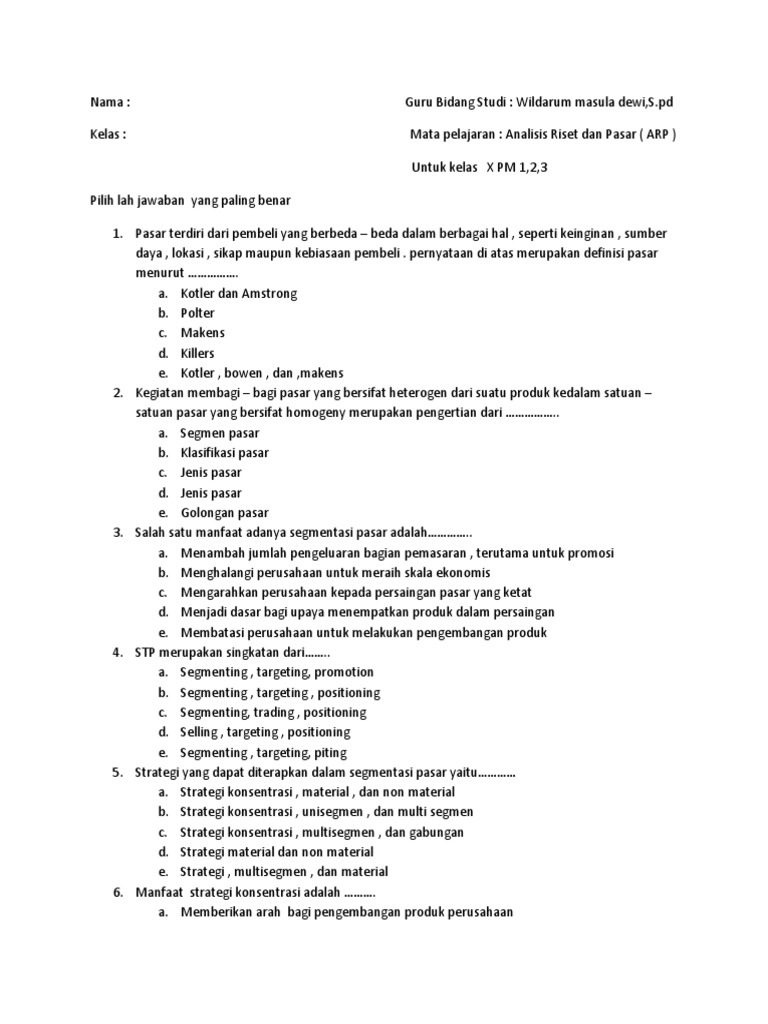 Contoh Soal Segmentasi Pasar : 45 Soal Manajemen Pemasaran Pilihan Ganda Jawaban Marketing Muttaqin Id / Maybe you would like to learn more about one of these?. We did not find results for: Maybe you would like to learn more about one of these? Check spelling or type a new query.
