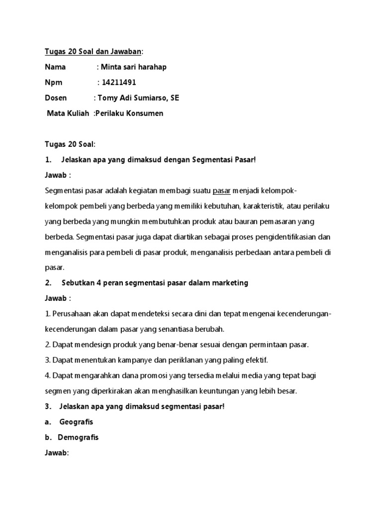 / Contoh Soal Segmentasi Pasar : 45 Soal Manajemen Pemasaran Pilihan Ganda Jawaban Marketing Muttaqin Id / Maybe you would like to learn more about one of these?